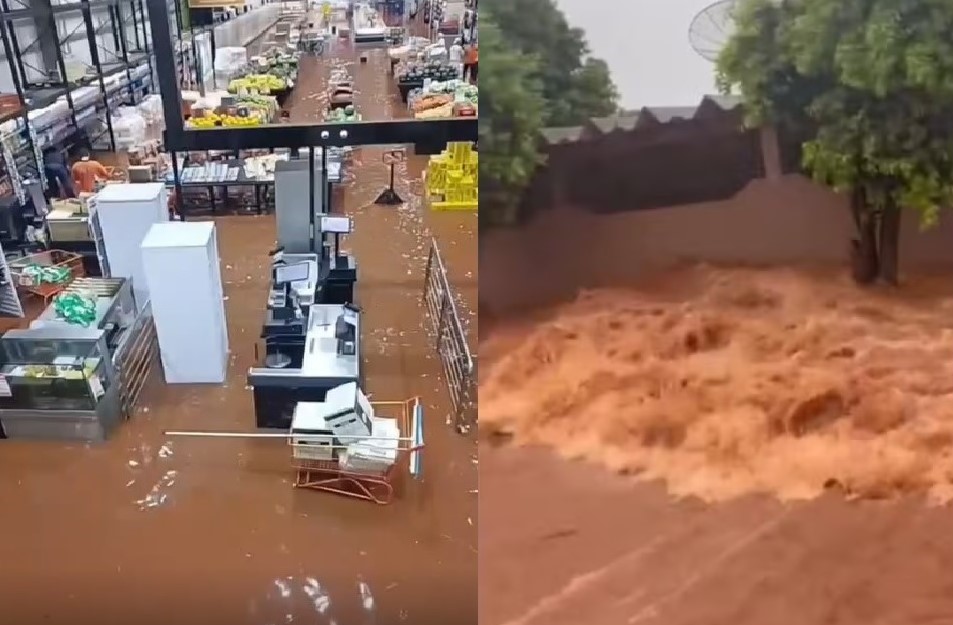 Chuva de 125 milímetros alaga supermercado, ruas e casas em Maracaj